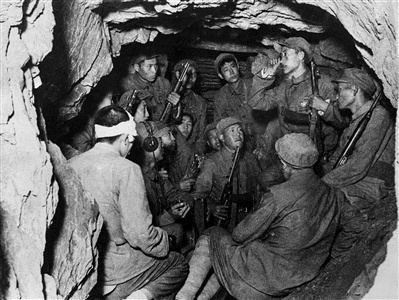 抗美援朝戰(zhàn)爭(zhēng)期間,某部黨員在坑道中召開黨員大會(huì),決心堅(jiān)守陣地。
