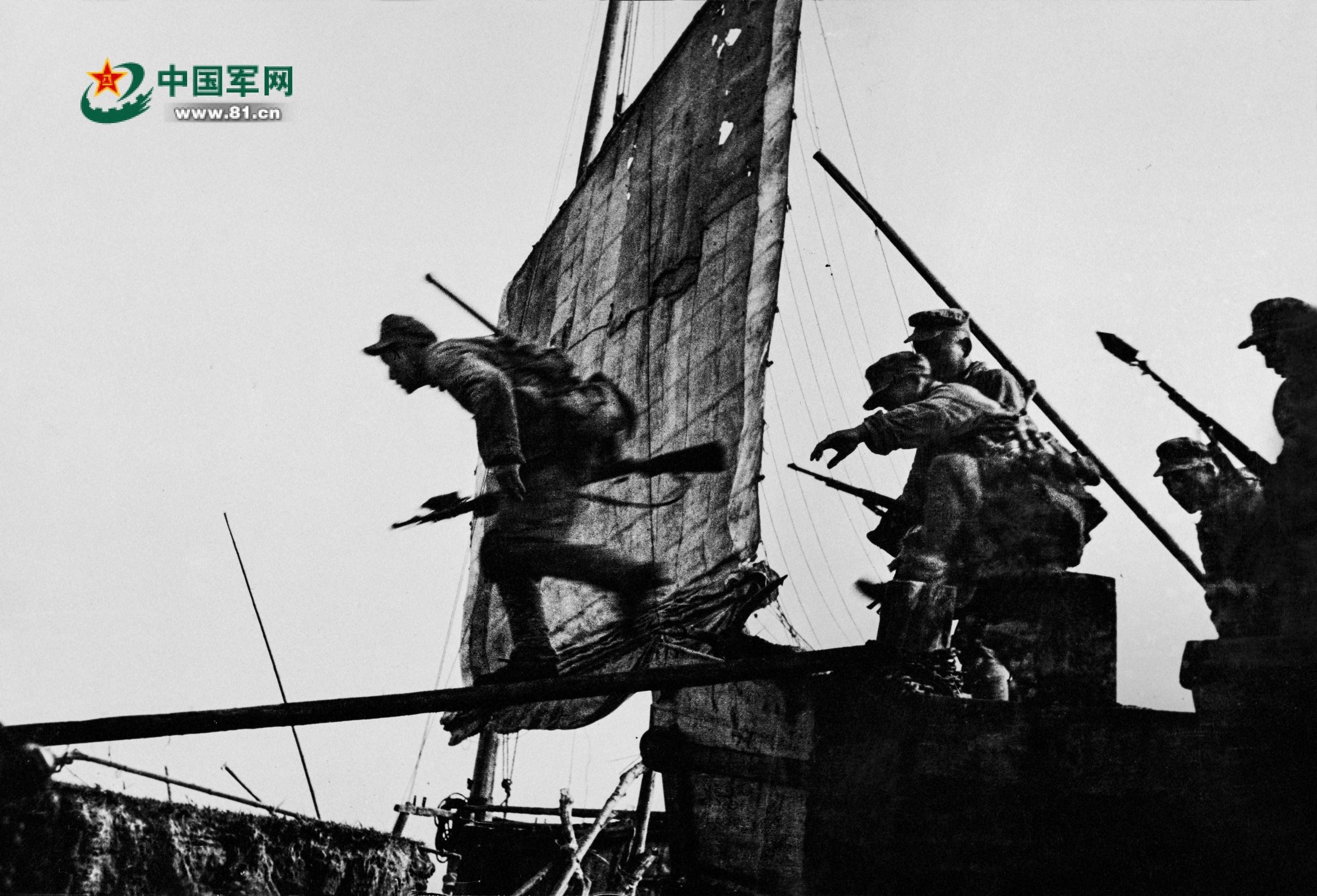 這是渡江戰(zhàn)役前夕,人民解放軍前線部隊在長江無為段開展臨戰(zhàn)訓練的幾個鏡頭。若不看文字說明,還以為是實戰(zhàn)場景。
