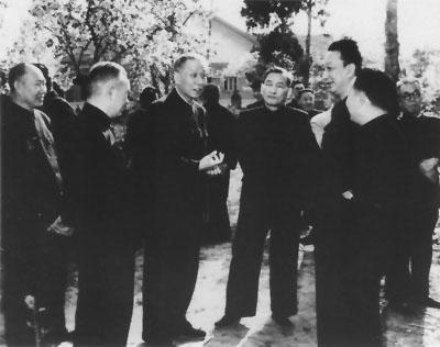 1958年3月,劉少奇、陳云同參加中共中央工作會議人員交談。