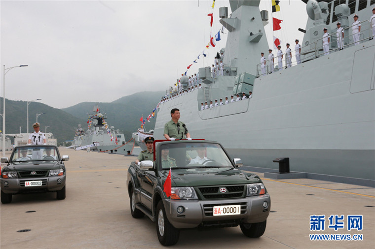 2013年4月9日,習(xí)主席檢閱水兵儀仗隊(duì)后,登上敞篷車。