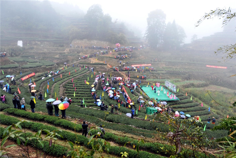 人們?cè)趶B門同安蓮花鎮(zhèn)小坪村道地生態(tài)茶園參加第九屆廈門市蓮花褒歌比賽(2015年3月5日攝)。新華社記者 林善傳 攝