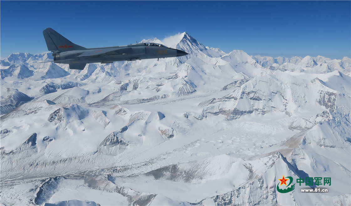 殲轟-7戰(zhàn)機(jī)巡航于茫茫雪原。