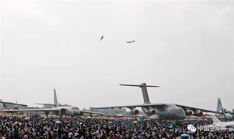 數(shù)以萬計的觀眾與八一隊共慶中國空軍生日。王鑫濤攝