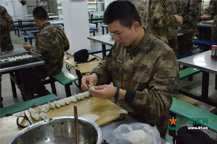 元旦假日第二天,兵哥哥們的“包餃子大賽”在歡呼聲中展開了??匆豢矗l(shuí)包的快,誰(shuí)包的餃子大方好看。嘗一嘗,誰(shuí)的餃子最好吃。食堂里,洋溢的歡樂(lè)的節(jié)日氣氛。