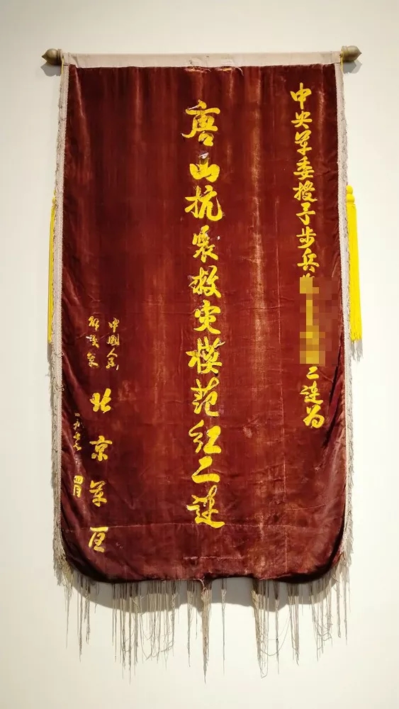 ▲“唐山抗震救災模范紅二連”錦旗