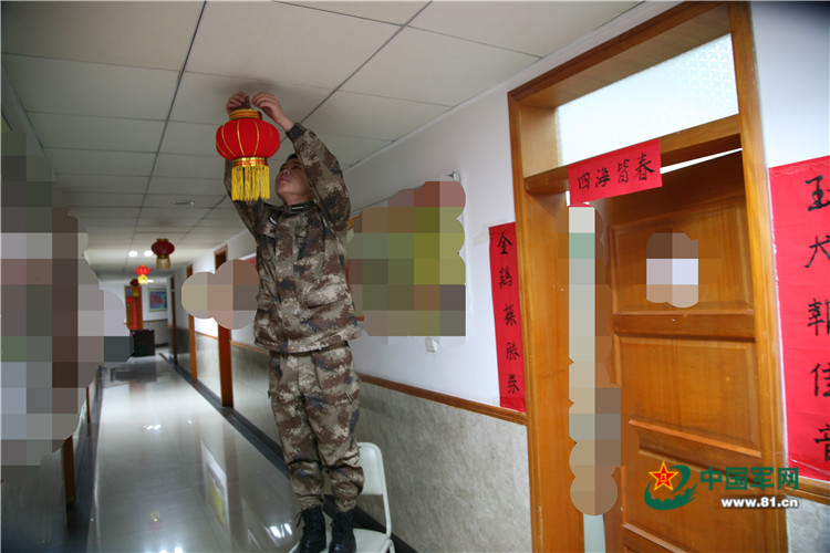 不知不覺,寢室的過道和俱樂部門前掛上了紅燈籠;戰(zhàn)友們自己裁紅紙,自己寫對(duì)聯(lián);班長(zhǎng)用黃臉盆裝滿了蘋果和香蕉等慰問品回寢室和大家一起分享。