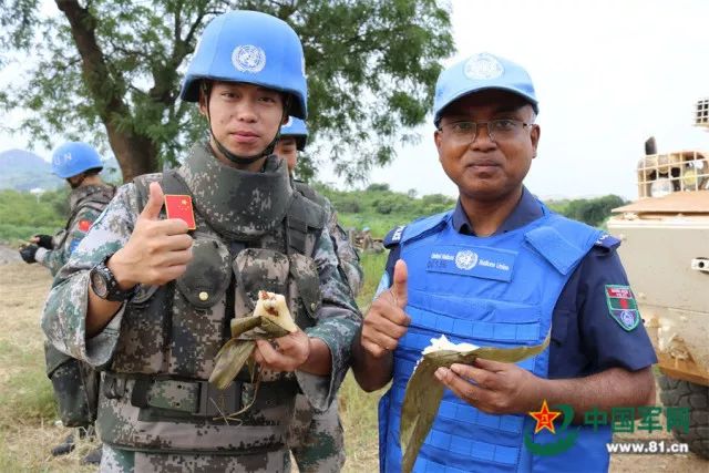 這里有美味可口的米粽——為了讓官兵們能吃上傳統(tǒng)佳節(jié)的美食,在維和步兵營保障組的帶領(lǐng)下,炊事班的用聯(lián)合國配發(fā)的糯米、蜜棗和各種豆類摻雜在一起,再加上從國內(nèi)帶來的粽葉、紅棗,親自動手包制美味可口的粽子!
