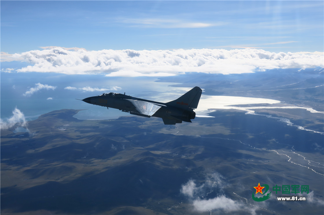 殲轟-7戰(zhàn)機穿云破霧,巡航于星羅棋布的雪域湖泊。