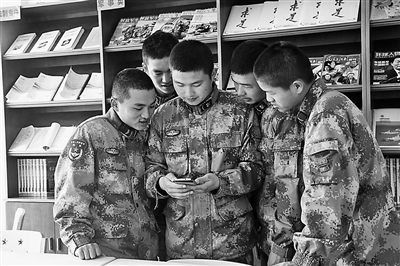 某部官兵瀏覽“錢塘兵事”微信公眾號上的資訊。馬 偉攝