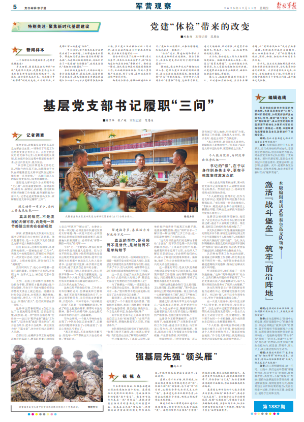 基層黨支部書記作為支部班子的“主心骨”,肩負(fù)著重要職責(zé)。面對新形勢、新任務(wù)、新情況、新問題,他們該如何更好破解工作難題、提升履職能力?前不久,記者走進(jìn)武警秦皇島支隊,索解基層黨支部書記履職“三問”。