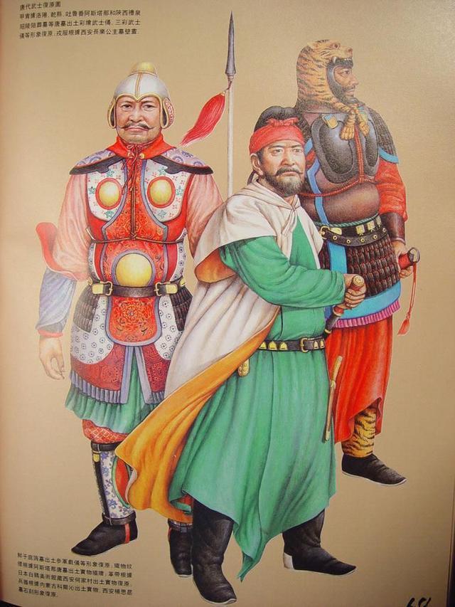 唐代是我國歷史上武官制度全面建成的時(shí)期,因此唐代武官的服飾比過去歷代更為完備,官服有朝服和常服之分,服用范圍是朝廷九品以上的文武官員。唐代的鎧甲有13種之多,甲片的形式有細(xì)鱗、山文、鎖子等,材質(zhì)則包括金屬、皮革和絹等??梢哉f從樣式到工藝,唐代的軍服都比前代有了很大的進(jìn)步。