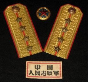 1956年開始佩戴的志愿軍帽徽、肩章、胸章。