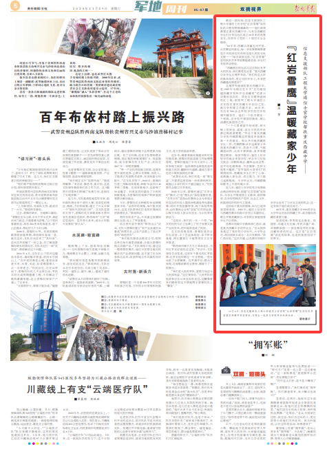 宣講結(jié)束,李秀原走出教室。校園里,共建文化長(zhǎng)廊、軍民共建廣場(chǎng)、雙擁耕讀園……到處都是軍民共建、漢藏和澤的印記。這正是“紅巖雪鷹”講述的故事,也是民族團(tuán)結(jié)結(jié)下的果實(shí)。