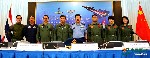 中國(guó)軍網(wǎng)泰國(guó)呵叻11月25日電 (黎璇)11月24日,慶祝中泰建交40周年飛行表演新聞發(fā)布會(huì)在泰國(guó)呵叻空軍基地舉行。八一飛行表演隊(duì)赴泰表演任務(wù)指揮員馮愛(ài)旺少將,向泰國(guó)空軍作戰(zhàn)廳廳長(zhǎng)帕努蓬中將贈(zèng)送的外宣紀(jì)念封《大閱兵中的空軍風(fēng)采》和《空軍一級(jí)戰(zhàn)斗英雄》受點(diǎn)贊。