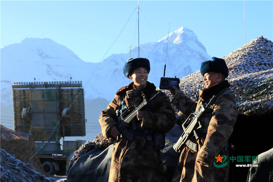 西部戰(zhàn)區(qū)空軍駐藏某旅高原駐訓(xùn)分隊警衛(wèi)戰(zhàn)士通過收音機(jī)實時收聽大會盛況。薛浩 攝