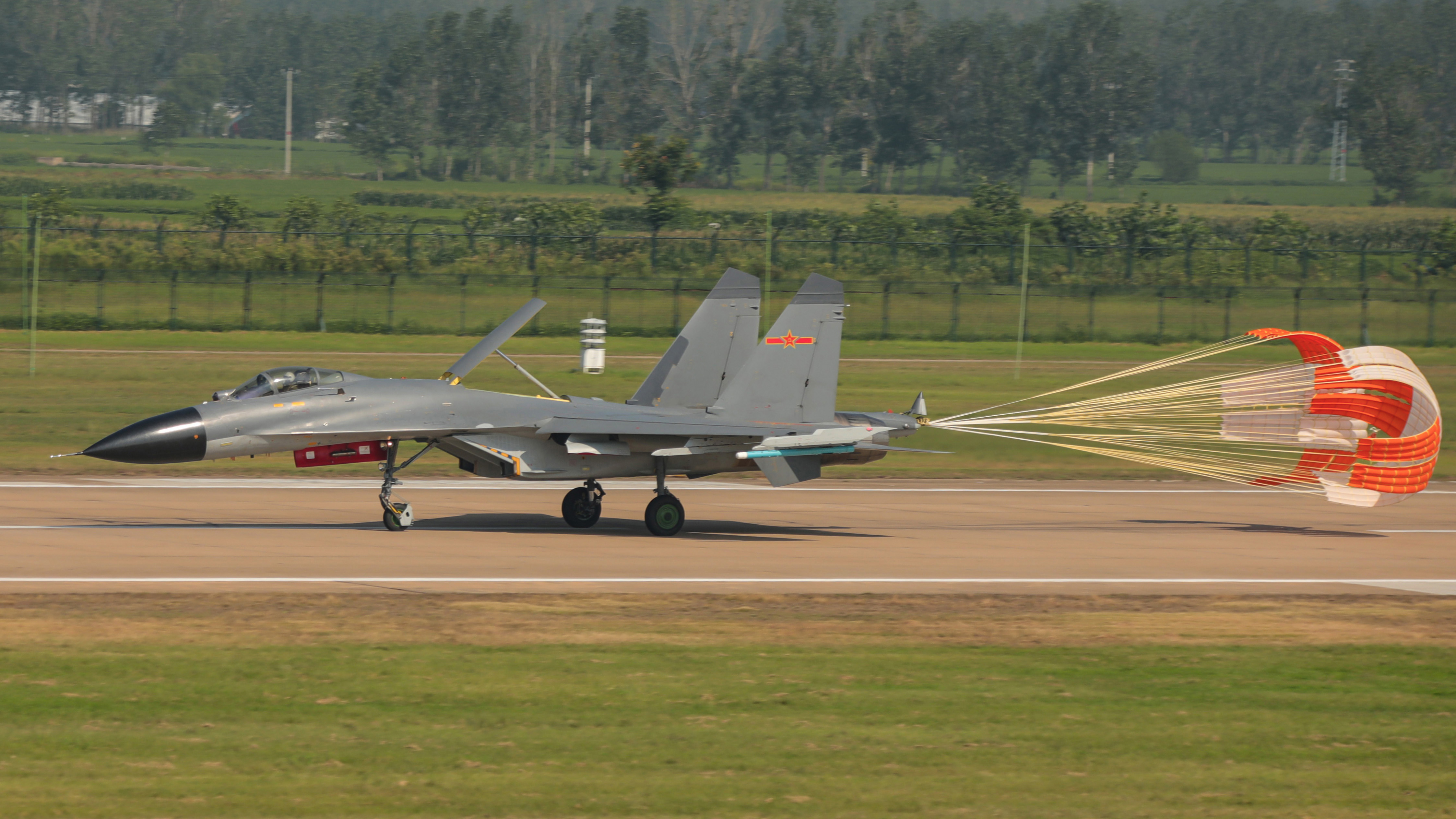 戰(zhàn)機放傘著陸