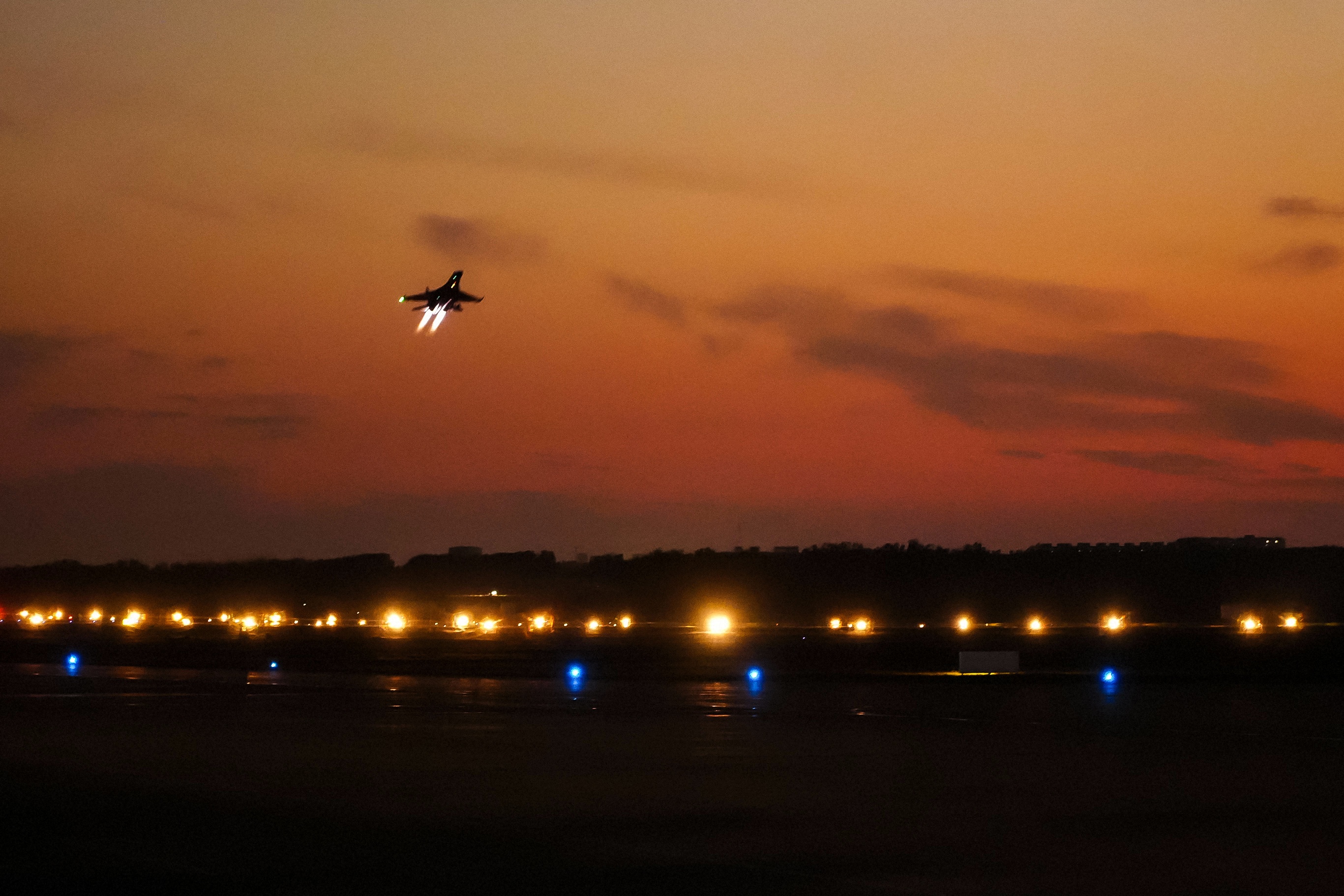 余暉似金,戰(zhàn)機平穩(wěn)滑行