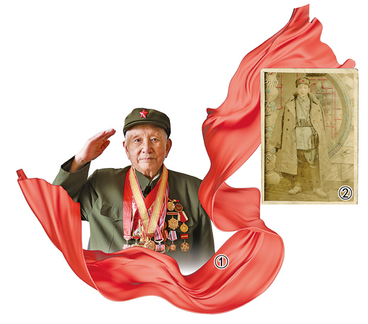 ▲圖①:楊化烽近照。 人民日?qǐng)?bào)記者胡婧怡攝;圖②:青年時(shí)期的楊化烽?!∈茉L者供圖