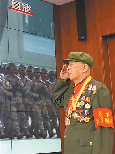 通過電視直播觀看了閱兵儀式,95歲的東北抗聯(lián)老戰(zhàn)士王濟堂(見圖,人民日報記者郭曉龍攝)心情久久不能平復(fù)。