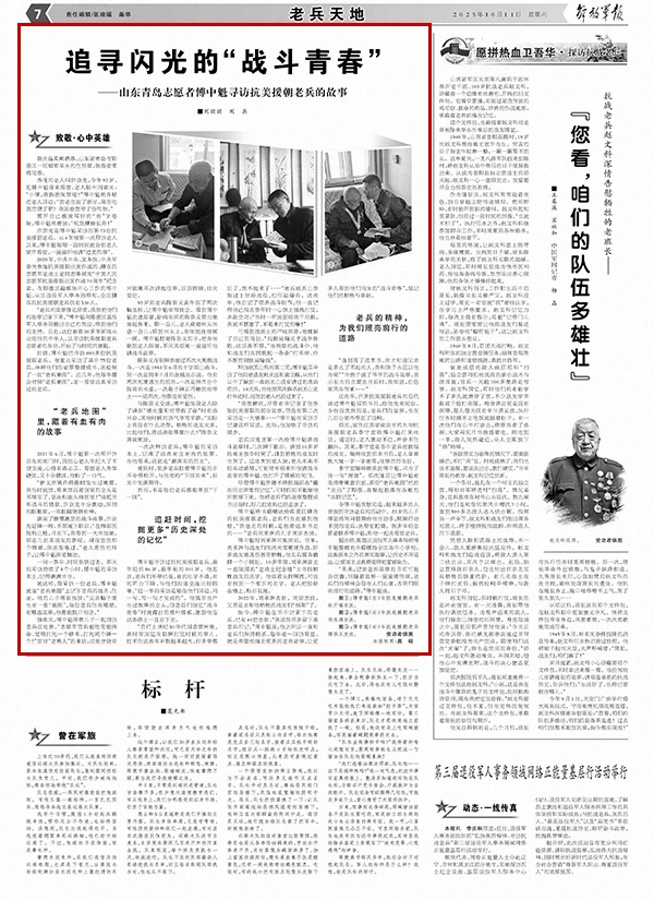 如今,傅中魁在書(shū)中記錄下的老兵,已有40位去世。“我還想再多留下些老兵印記。”傅中魁說(shuō),他之所以一直和老兵們保持聯(lián)系,每年逐一回訪看望,就是希望挖掘出更多的老兵故事,讓更多人看到他們閃光的“戰(zhàn)斗青春”,銘記他們的犧牲與奉獻(xiàn)。