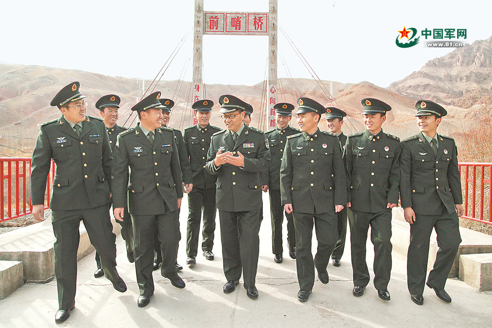 11月15日,新疆軍區(qū)某邊防團斯姆哈納邊防連前哨班官兵高興地迎來上級派來的黨的十九大精神宣講專家。張強 攝