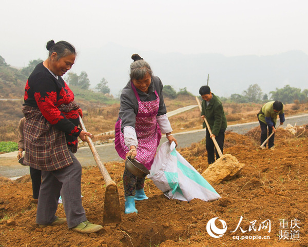 紅爐村村民正在為即將種植的果樹打窩施底肥。胡虹/攝