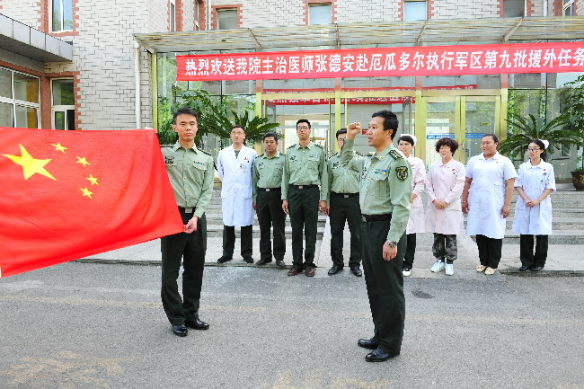 中國(guó)軍網(wǎng)大連6月2日電 趙景生、田偉、特約通訊員汪學(xué)潮報(bào)道:“我宣誓:我是中國(guó)人民解放軍軍人,一定牢記使命,服從命令、嚴(yán)守紀(jì)律,救死扶傷、不畏艱險(xiǎn),堅(jiān)決完成醫(yī)療援外任務(wù),絕不辜負(fù)黨和軍隊(duì)重托……”6月1日上午,沈陽軍區(qū)大連療養(yǎng)院為軍醫(yī)張德安一個(gè)人組織了一場(chǎng)氣氛莊嚴(yán)的出征儀式。次日,他與另外兩名軍醫(yī)從北京首都機(jī)場(chǎng)出發(fā),奔赴厄瓜多爾執(zhí)行醫(yī)療援外任務(wù)。