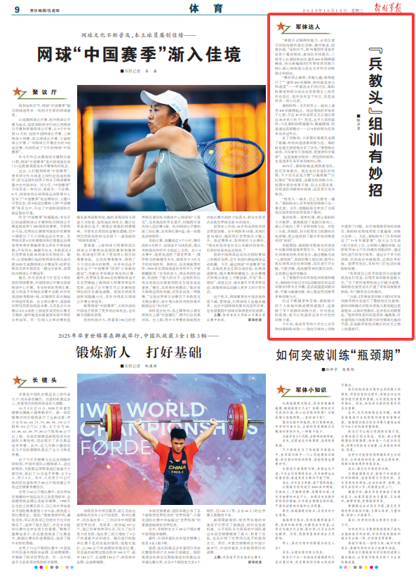 “當(dāng)前,《軍事體育訓(xùn)練大綱》對軍體訓(xùn)練考核內(nèi)容進行了整體性優(yōu)化重塑,新的訓(xùn)練模式對組訓(xùn)者能力素質(zhì)提出更高要求,從練好到教好,還有很長的路要走?!彼眯菹r間查資料、編教案,針對通用戰(zhàn)斗體能等課目研究精準(zhǔn)化施訓(xùn)手段,在創(chuàng)新軍體組訓(xùn)模式的攻關(guān)之路上執(zhí)著前行。