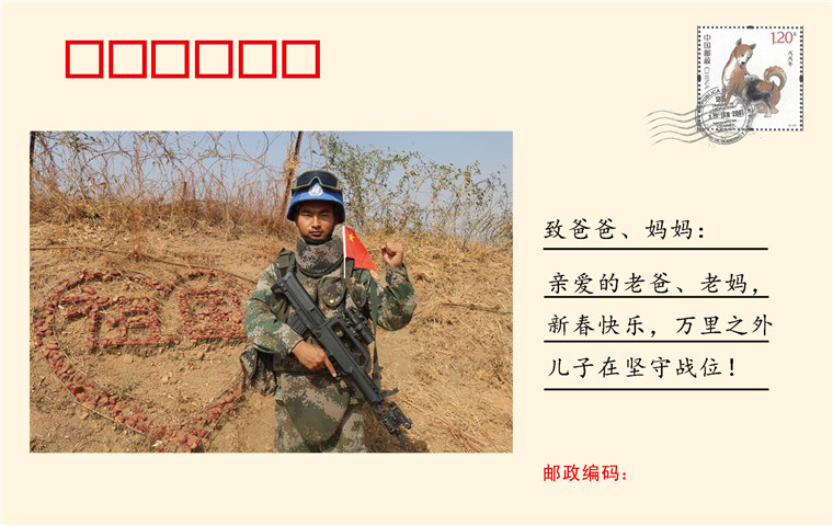 蘇志輝(中士):親愛的老爸、老媽,新春快樂,萬里之外的兒子還在堅守戰(zhàn)位,不能陪在你們身邊,深感遺憾。我離開你們已經(jīng)七年了,經(jīng)部隊的培養(yǎng),我也慢慢長大了,請你們不要為我擔心???!我身后有強大的祖國!