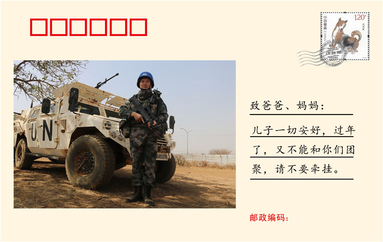 時(shí)成帥(中士):我是一名維和軍人,常言道:“身在異鄉(xiāng)為異客,每逢佳節(jié)倍思親”,來到萬里之外的非洲大地我深有感觸。爸爸媽媽,兒子在這里一切安好,過年了,無奈又不能團(tuán)聚,請不要牽掛。自古忠孝兩難全,念!念!念!我在堅(jiān)守崗位的同時(shí)也要給你們送上新春祝福,同時(shí)祝愿關(guān)心我的親人朋友們新春快樂,健康幸福!
