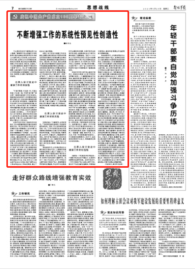 不斷增強工作的系統(tǒng)性預見性創(chuàng)造性