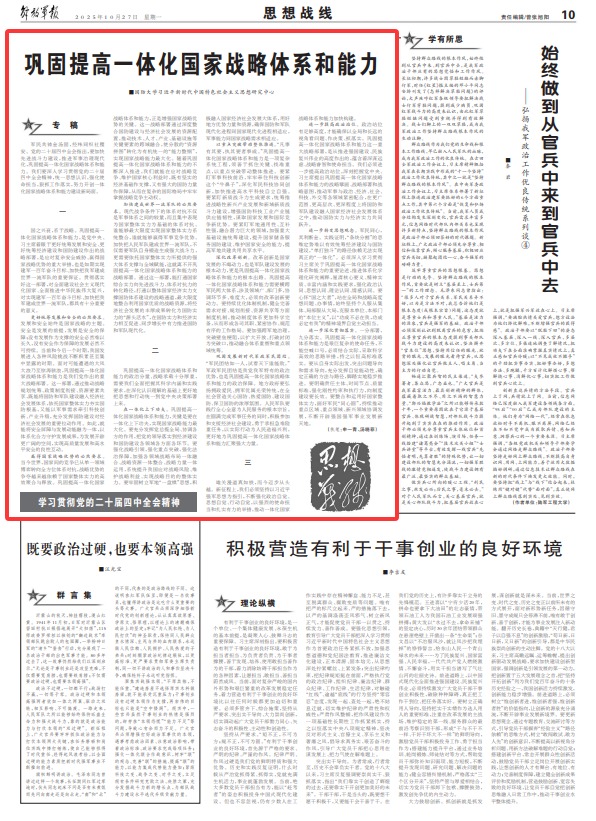 鞏固提高一體化國家戰(zhàn)略體系和能力