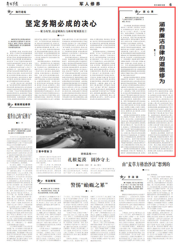 ●保持廉潔自律,做人才有骨氣,做事才有底氣,才能樹(shù)形象、立威信、得人心