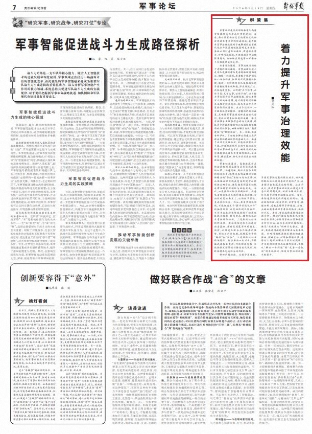 軍事論壇丨著力提升軍事治理效能