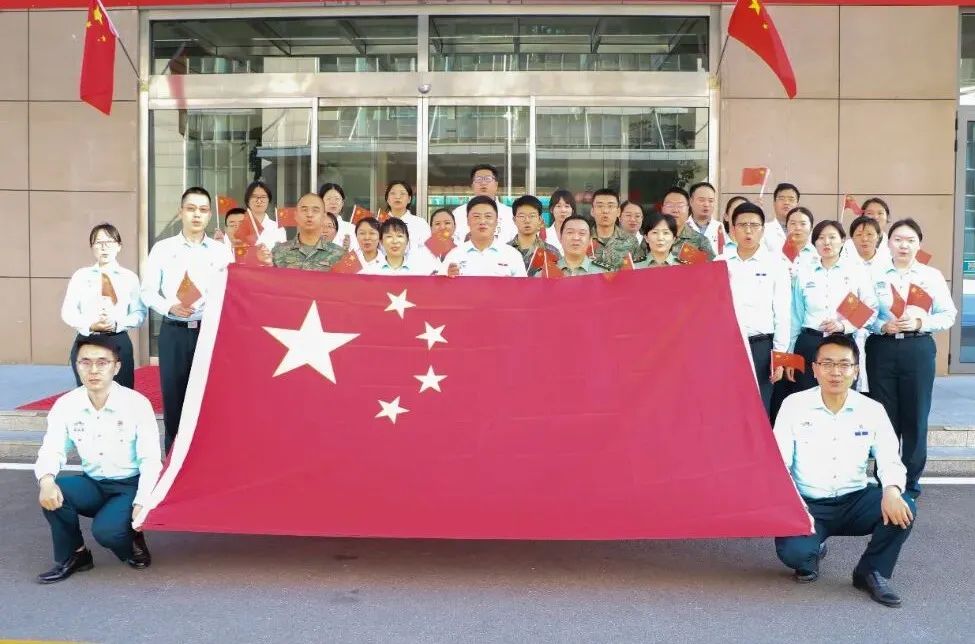 “升國(guó)旗,奏唱《中華人民共和國(guó)國(guó)歌》!”隨著口令聲下達(dá),升旗手振臂揚(yáng)旗。在雄壯的《義勇軍進(jìn)行曲》中,鮮紅的五星紅旗徐徐升起,與藍(lán)天白云交相輝映。全體人員莊重敬禮,齊聲高唱國(guó)歌,共同祝愿?jìng)ゴ笞鎳?guó)繁榮昌盛、人民幸福安康。