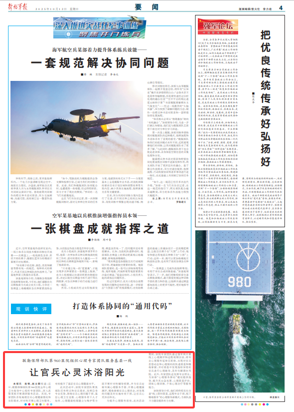 該院領導介紹,他們將持續(xù)優(yōu)化完善“線上即時篩查、遠程專業(yè)干預、線下精準服務”的心理服務新模式,為部隊戰(zhàn)斗力建設提供有力支撐。