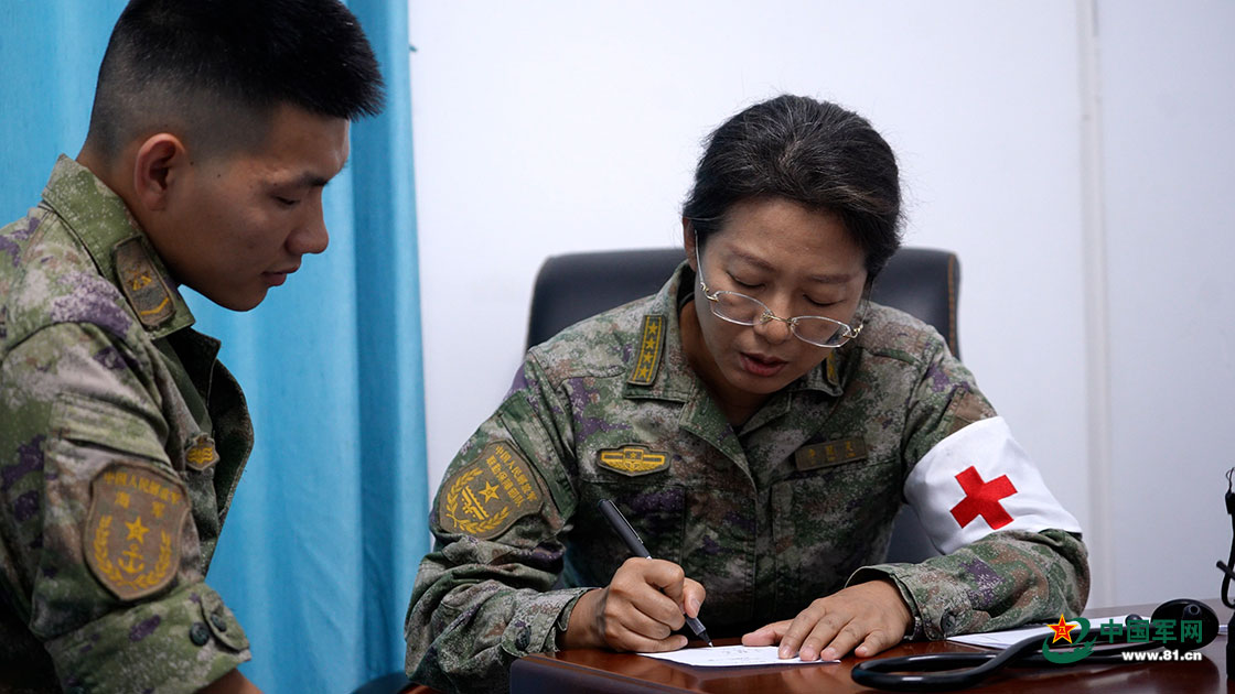 為官兵耐心解答完睡眠問題、腸胃不適等困擾后,她指著那塊發(fā)紅的皮膚,忍不住叮囑道:“這些摩擦發(fā)紅的地方也要注意清洗上藥,不然磨破之后可能會有感染風(fēng)險?!庇珠_好涂抹用的藥膏,在紙上仔細寫下用法用量。