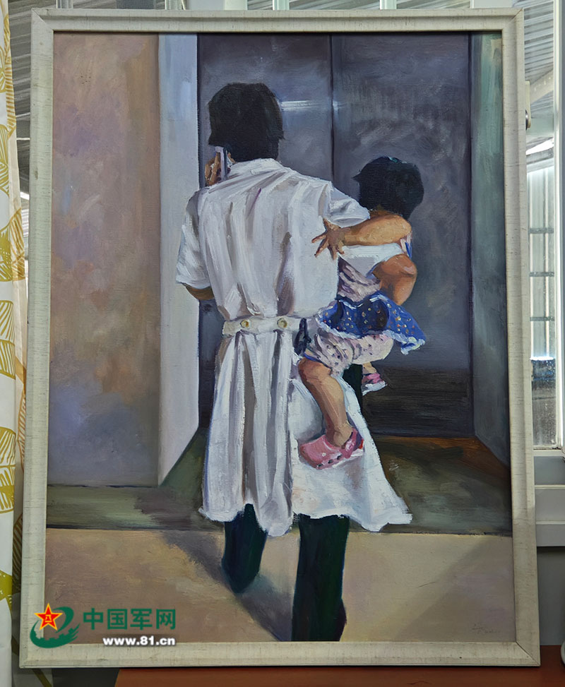 談起走過最難的路,李慧靈覺得是創(chuàng)科之初的那段日子。每天要接幾百個電話,要從千頭萬緒中理清科室建設(shè)的脈絡(luò),覺得時間不夠用是她最大的感受。一次節(jié)假日期間加班,李慧靈等在電梯前,左手打著電話,右手抱著小女兒,女兒像只小猴子一樣緊緊“掛”在她身上。一位官兵家屬看到這個場景,就用畫筆記錄了下來。