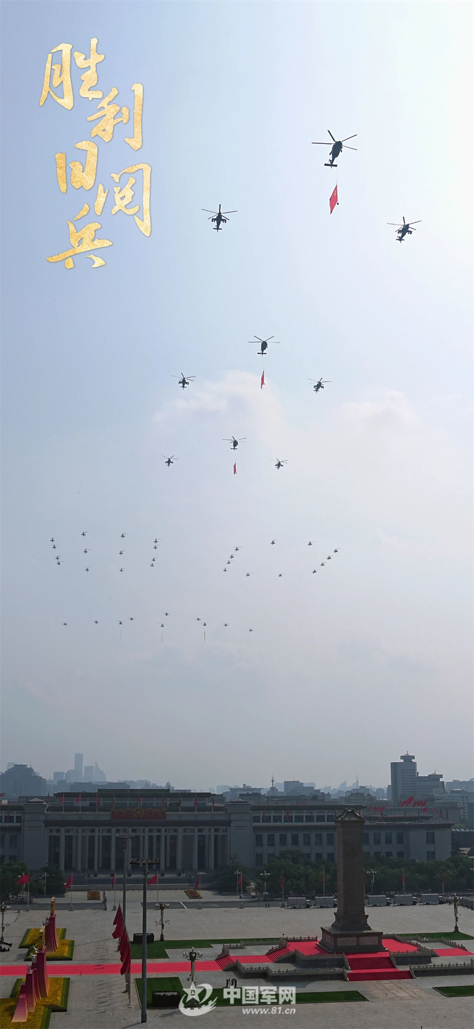 【每天一張新壁紙 #“換”醒戰(zhàn)斗力#】9月3日,紀(jì)念中國(guó)人民抗日戰(zhàn)爭(zhēng)暨世界反法西斯戰(zhàn)爭(zhēng)勝利80周年大會(huì)在北京隆重舉行。這是空中護(hù)旗梯隊(duì)飛過天安門廣場(chǎng)上空。