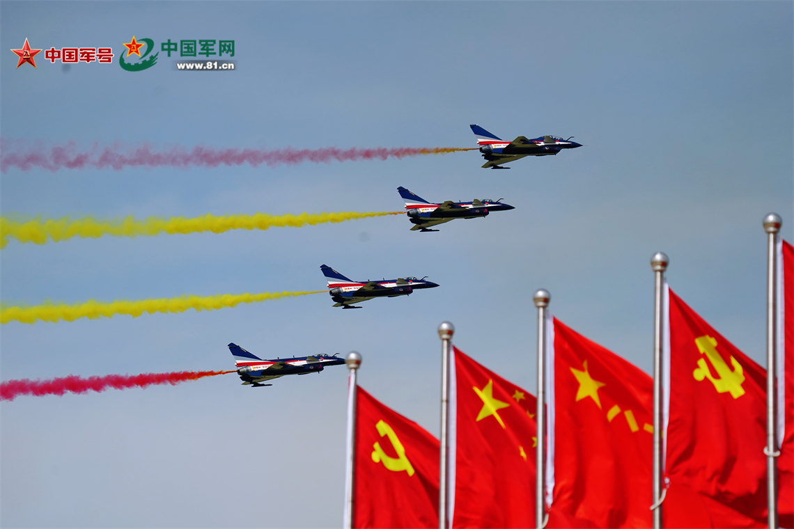 9月19日上午,第十一屆空軍航空開放活動和長春航空展在吉林長春開幕。這是“八一”飛行表演隊帶來精彩表演。中國軍網(wǎng)記者鄭欣宇 攝