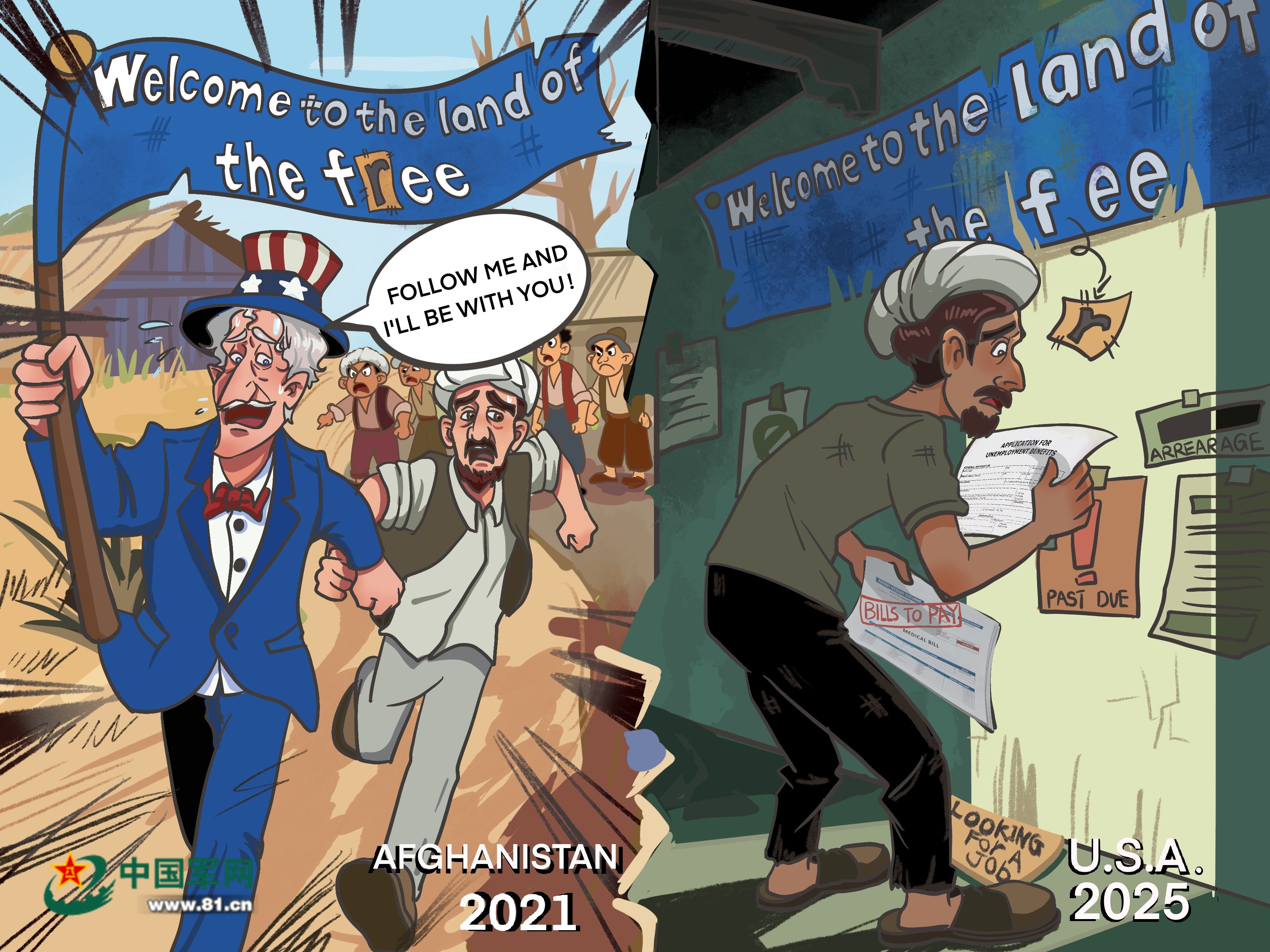 今年6月,美國就以所謂“國家安全”為由,宣布對阿富汗、緬甸、乍得、剛果(布)、赤道幾內(nèi)亞、厄立特里亞、海地、伊朗、利比亞、索馬里、蘇丹和也門12國公民實施全面入境限制;對布隆迪、古巴、老撾、塞拉利昂、多哥、土庫曼斯坦和委內(nèi)瑞拉7國公民實施部分入境限制。拉坎瓦爾槍擊案發(fā)生后,特朗普簽署了凍結(jié)上述19國公民移民美國簽證和綠卡申請的行政令。這19個國家中,不乏被美西方深度干預(yù)甚至侵入,后來又“拍屁股”走人,扔下一個爛攤子的國家?!袄餐郀枴眰兊淖鎳诿绹壑卸际请S時可棄的棋子,他們個人又能得到美國多大的重視呢?這些對美國充滿幻想的人,滿心以為抱上了美國的大腿,就能換來美國的憐憫同情,過上“美國人的幸福生活”,他們卻偏偏忘記了,有一句話在現(xiàn)實世界中屢屢應(yīng)驗,那就是:“你愛美國,美國愛你嗎?”
