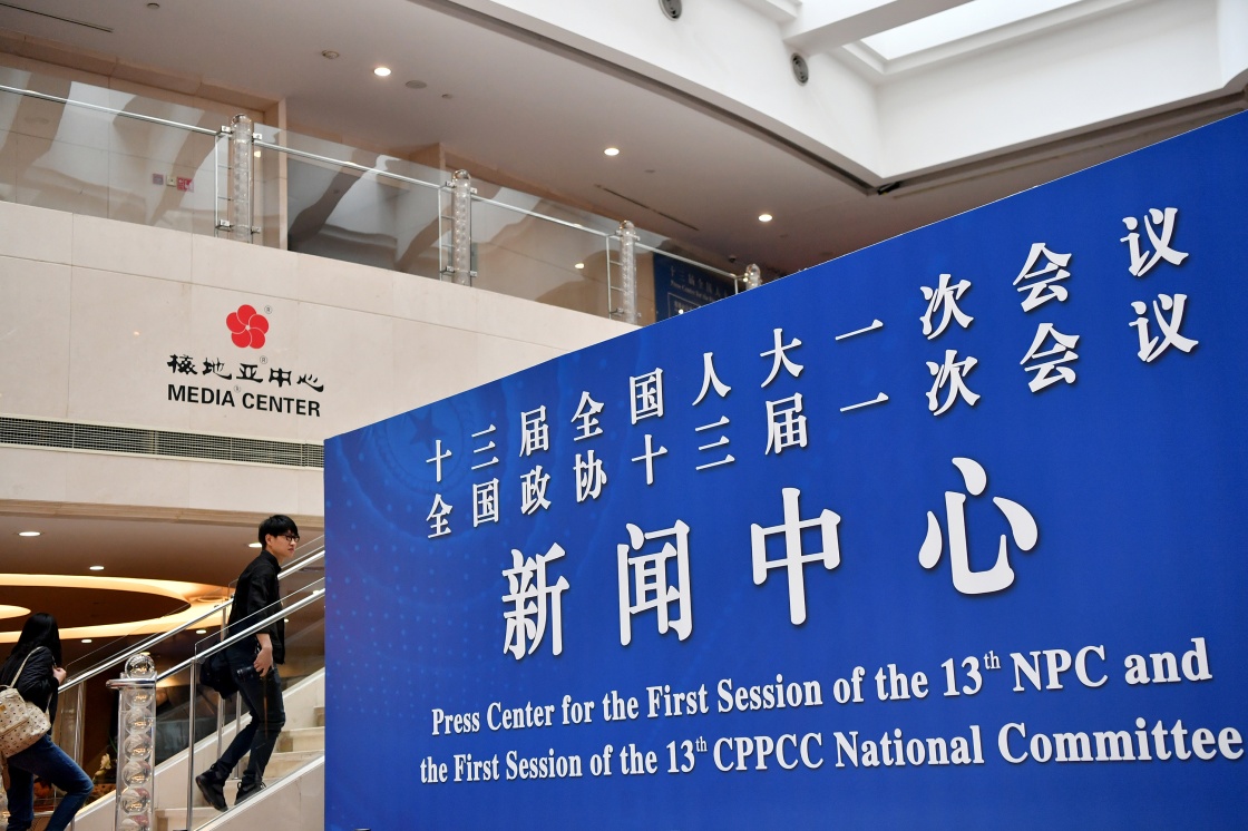 2月27日拍攝的全國(guó)兩會(huì)新聞中心。新華社記者 李鑫 攝