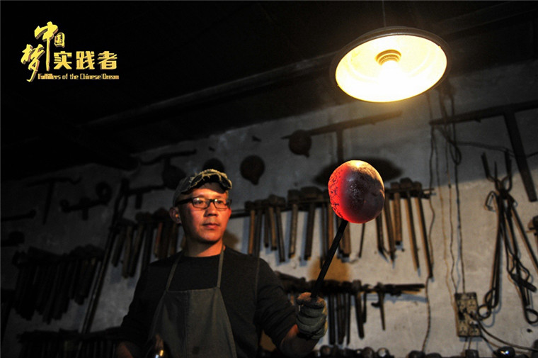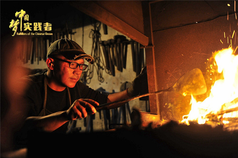 “人生有三苦,撐船打鐵賣豆腐?!边@是一句行家間的玩笑話。蔡德全半路出家,想要完成理想的作品、成為一個合格鐵匠藝人更是難上加難,付諸的努力可想而知。僅僅是一雙手,就足以讓聽說他故事的人心頭一緊:何苦呢?蔡德全思索了一會說:“當手掌打鐵終于打出繭子的時候,我也懂得了對時間和人生的敬畏?!?/p>