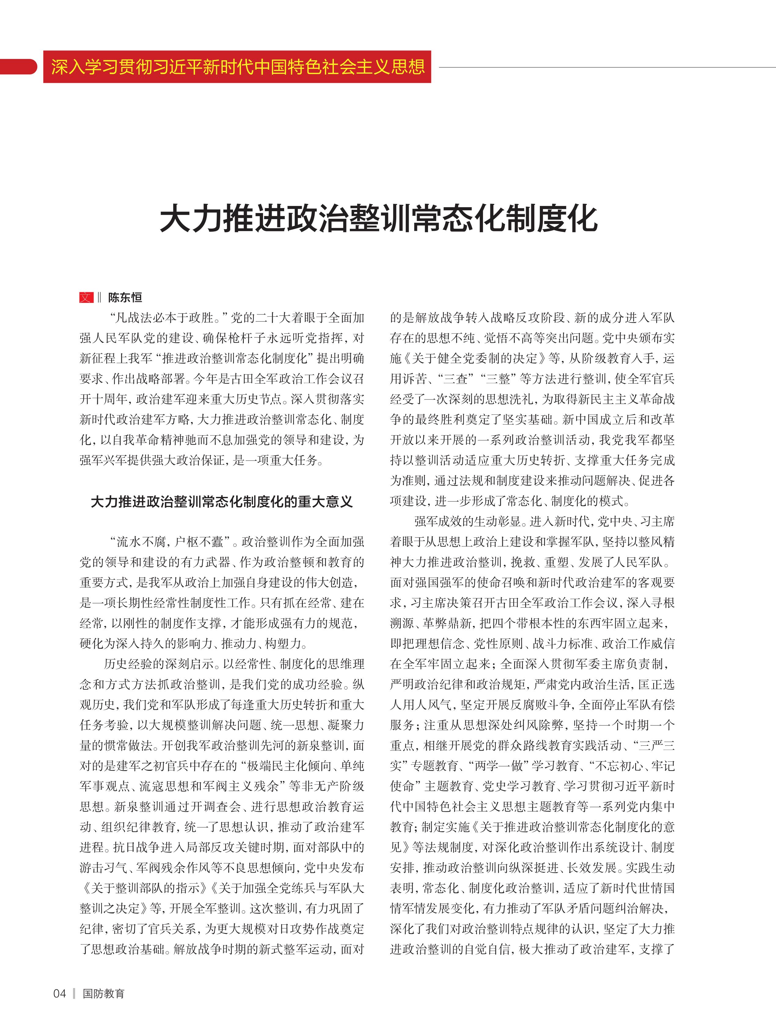 大力推進(jìn)政治整訓(xùn)常態(tài)化制度化