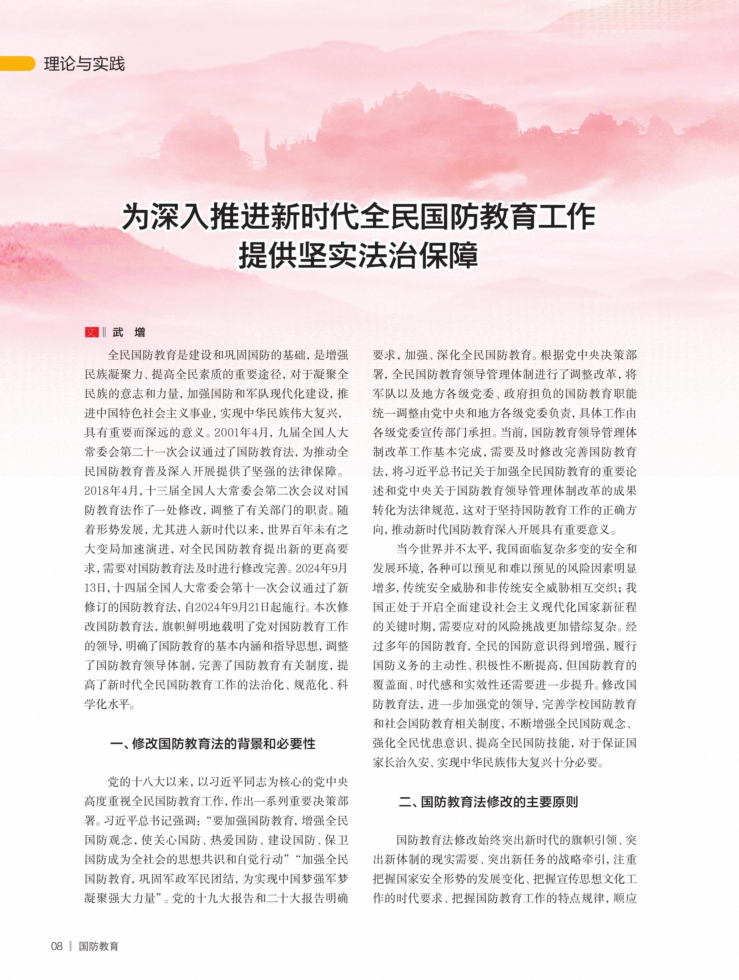 為深入推進新時代全民國防教育工作 提供堅實法治保障
