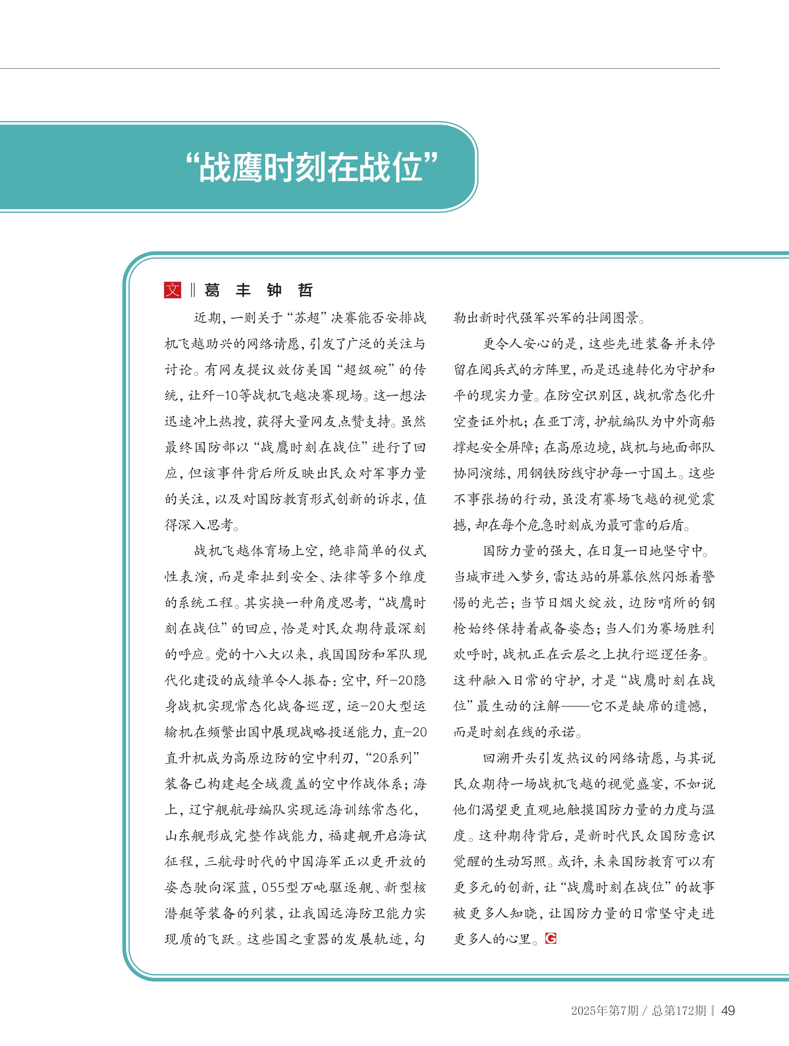 “戰(zhàn)鷹時刻在戰(zhàn)位”