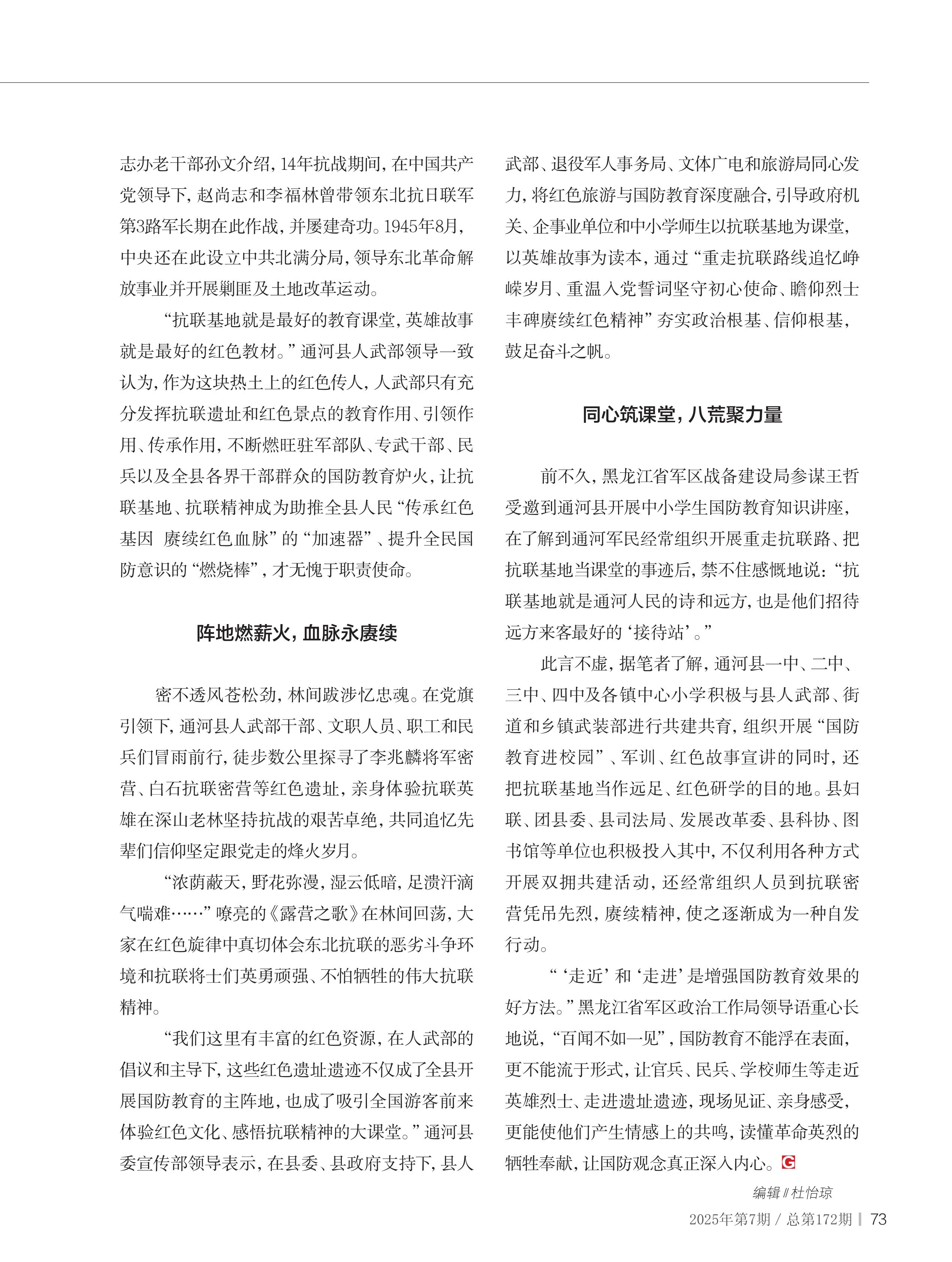 黑龍江省通河縣人武部發(fā)揮東北抗聯(lián)遺址作用提升全民國防教育質(zhì)效——