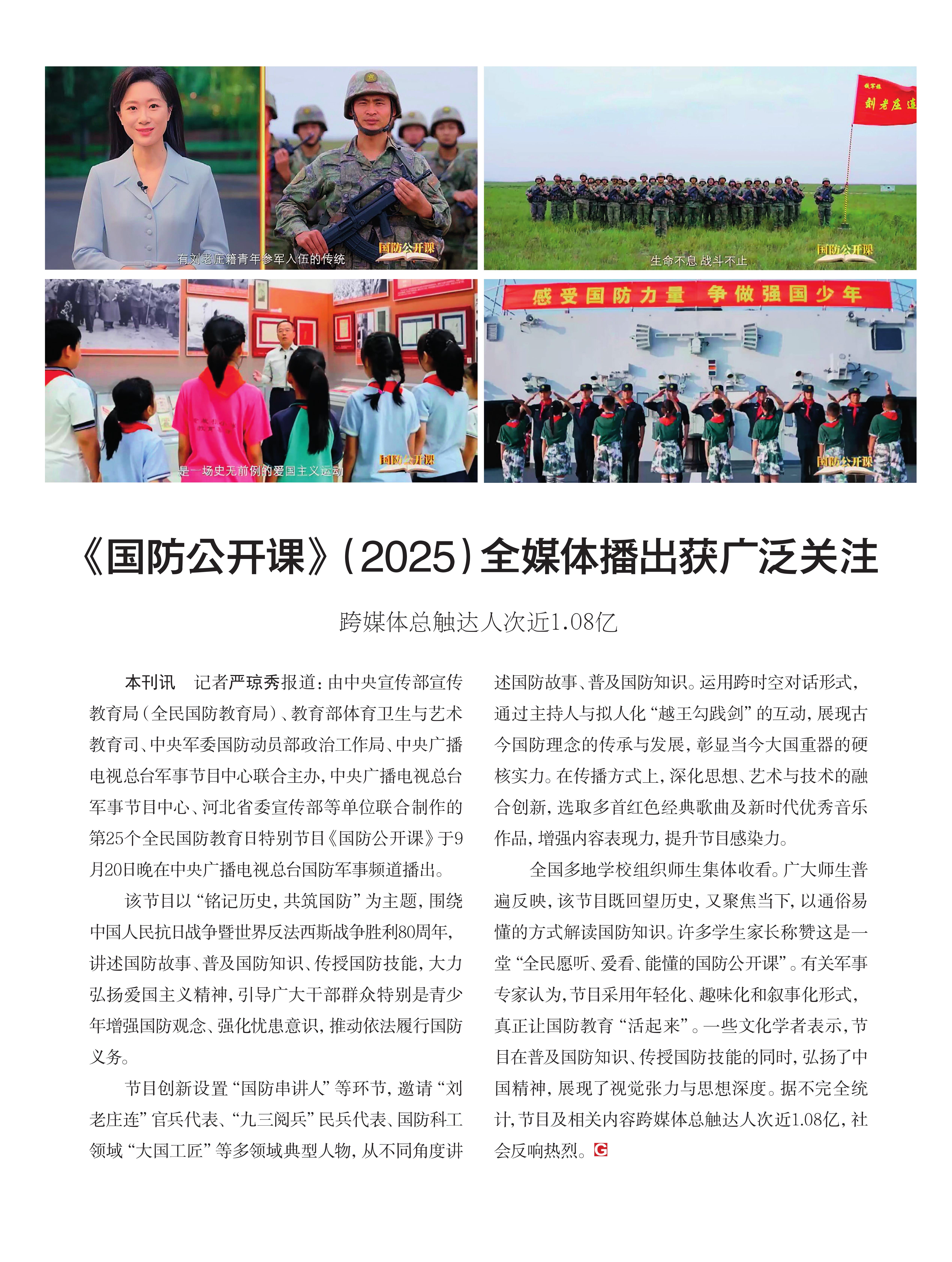 《國防公開課》(2025)全媒體播出獲廣泛關(guān)注