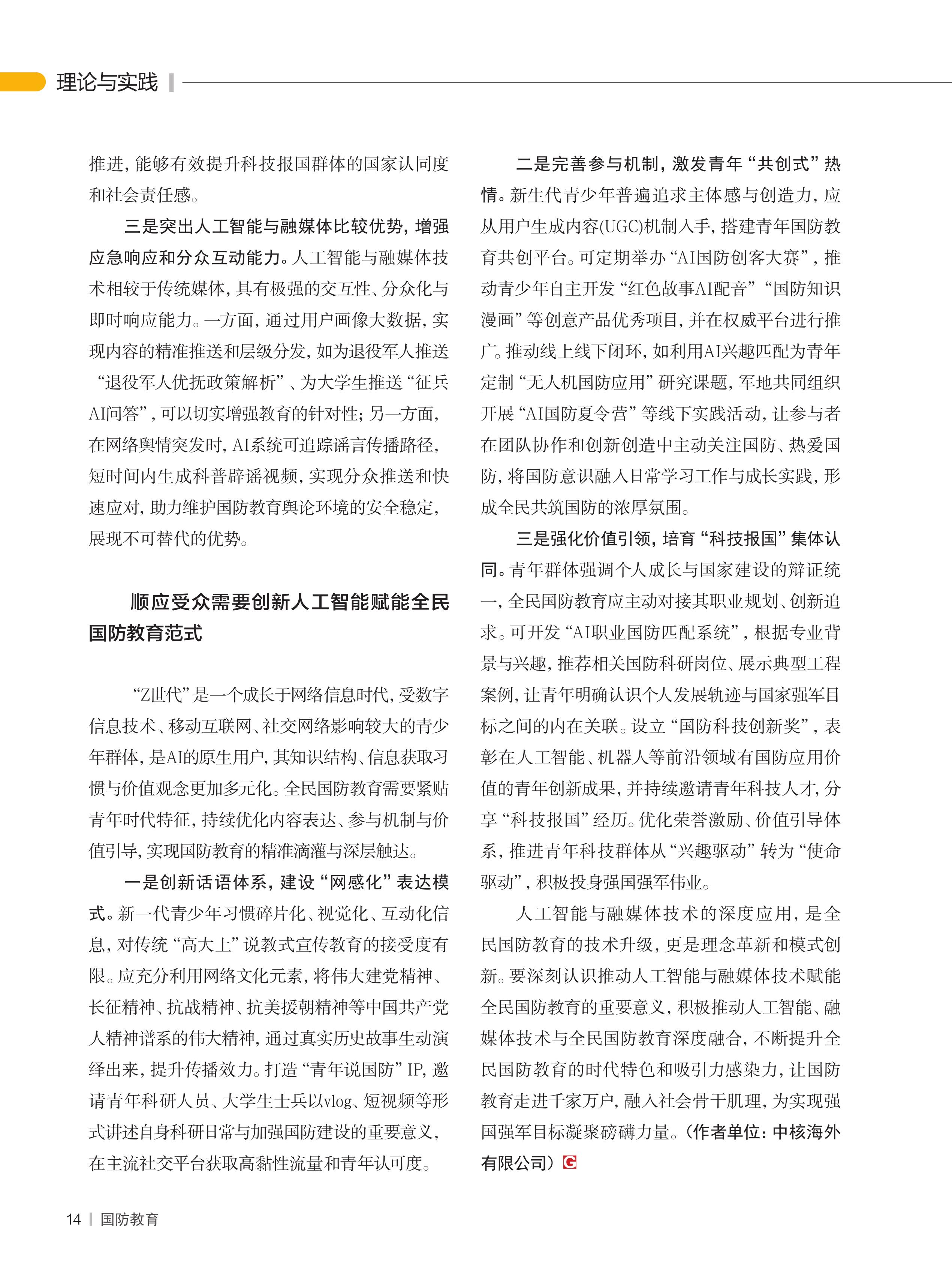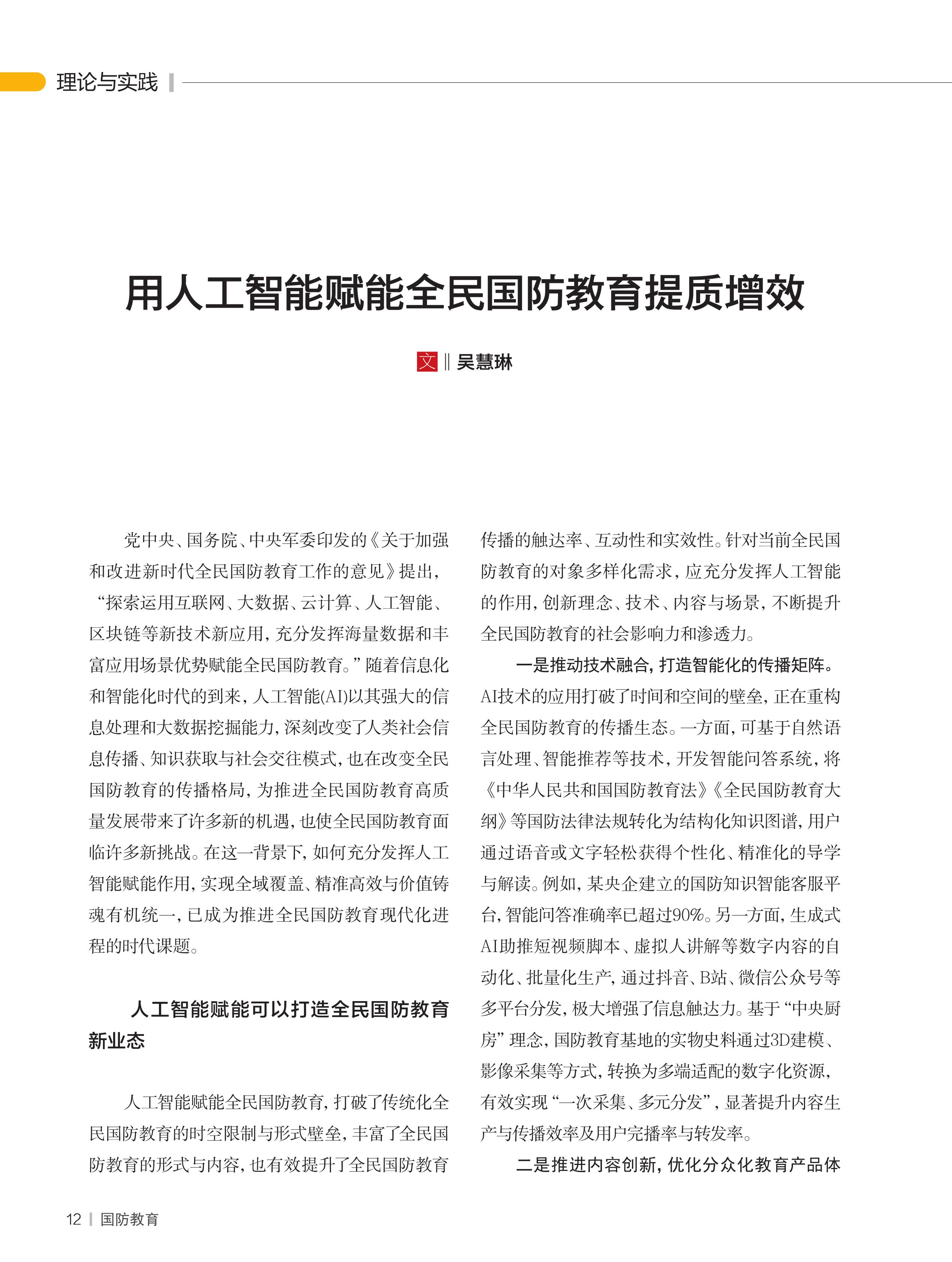 用人工智能賦能全民國(guó)防教育提質(zhì)增效