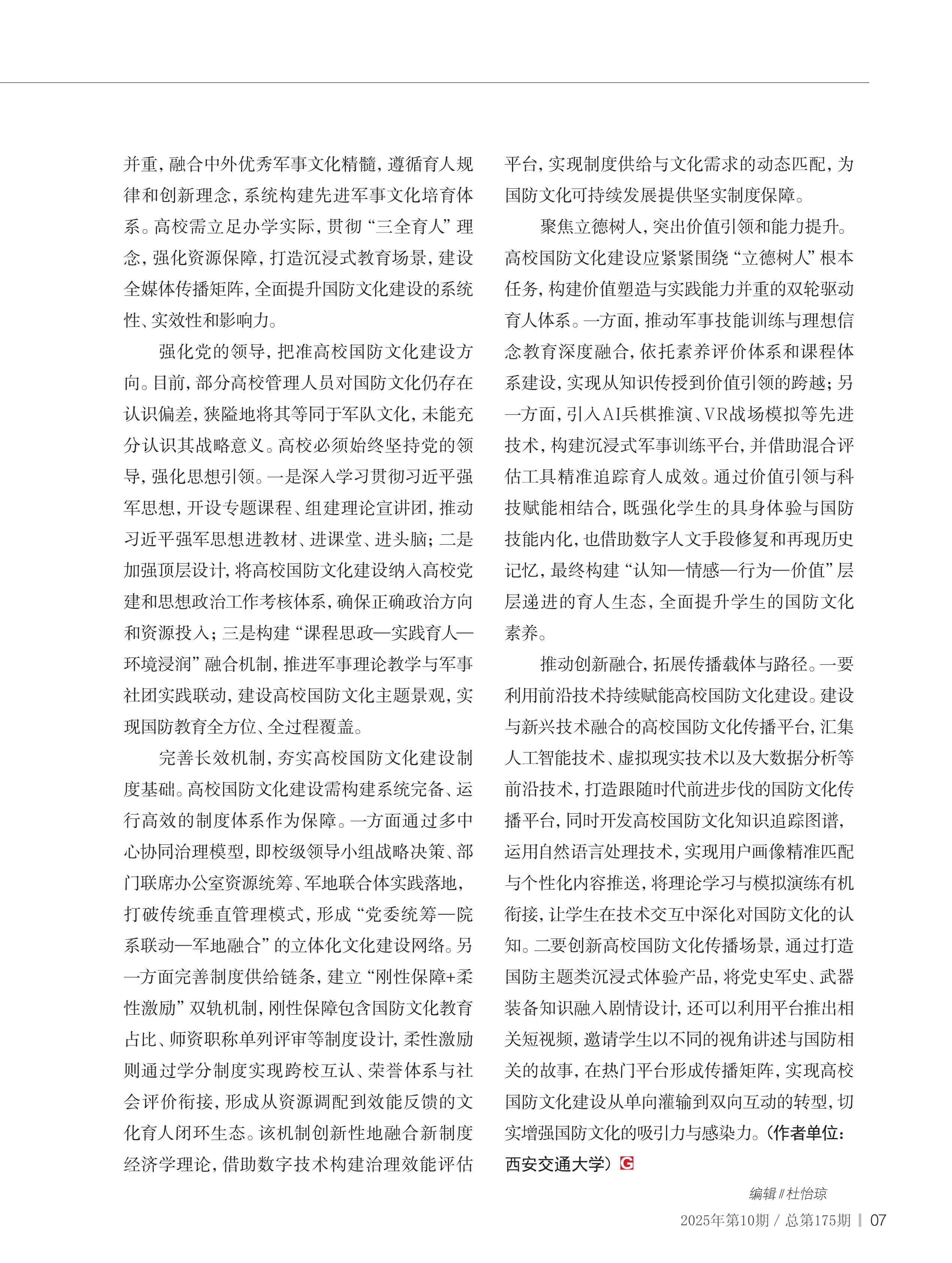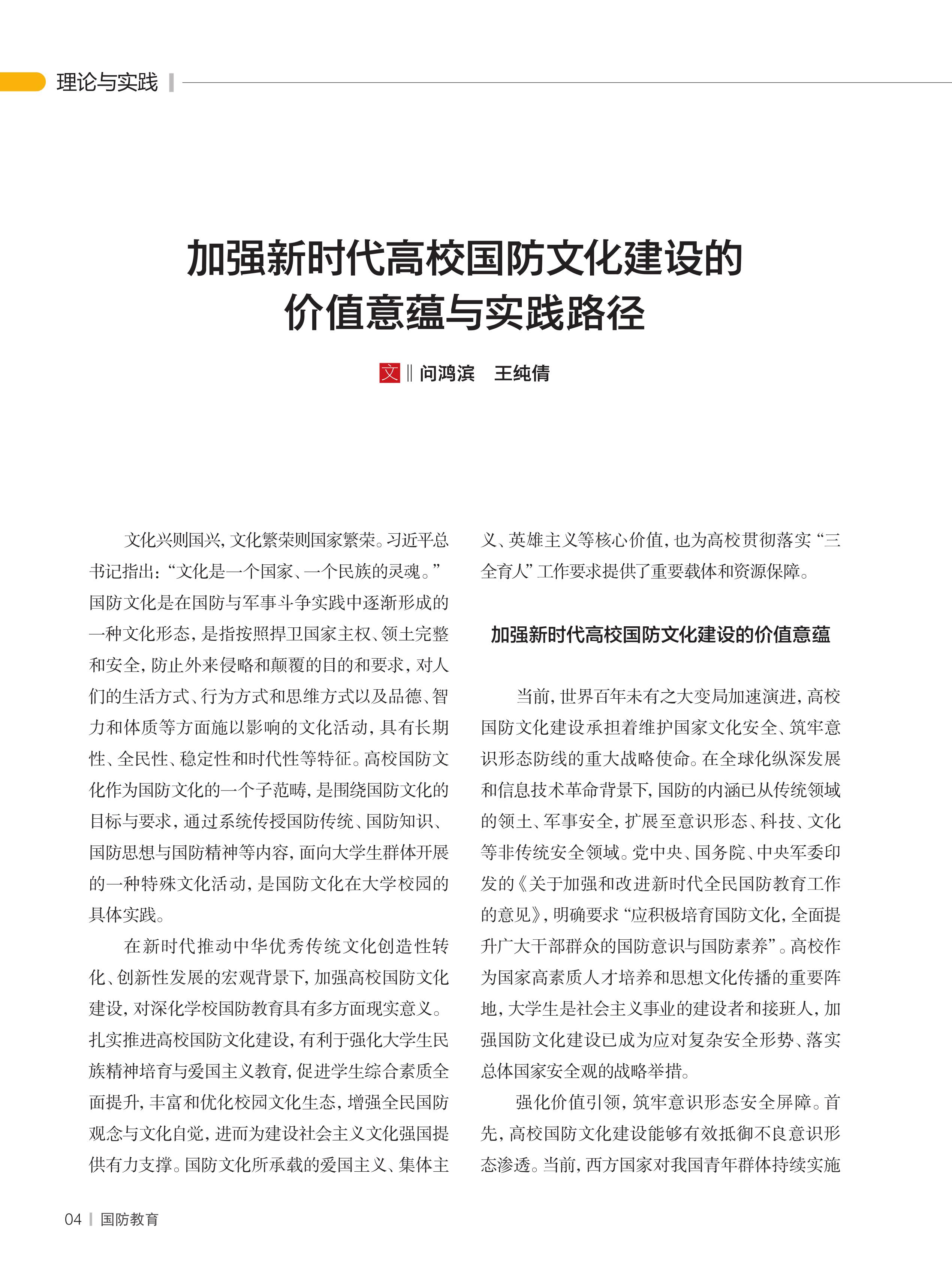 加強(qiáng)新時代高校國防文化建設(shè)的價值意蘊(yùn)與實(shí)踐路徑